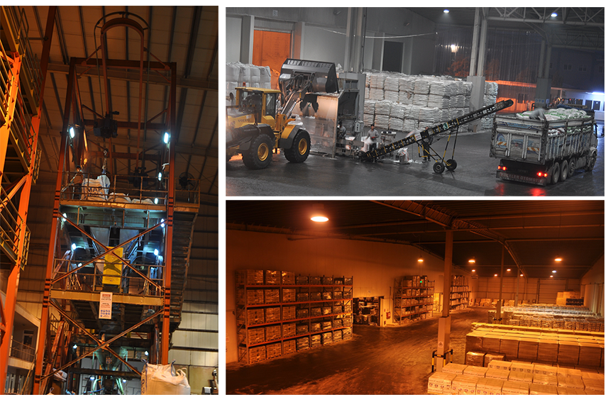 Doktor Tarsa has warehouse/packing facilities in 3 major port cities of Turkey; Antalya, Izmir and Mersin. Total storage capacity is 100.000 MT bulk, 12.000 MT shelf system for pallet storage. Total covered storage and manufacturing area is 50.000m2